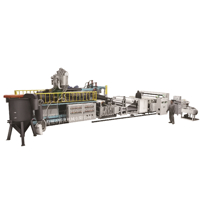 設備按制品結構所需可選擇單層/多層共擠工藝,還可裝備原料自動計量配料系統,電暈系統、瑕疵檢測、在線測厚、全自動調節模具、襯膜放卷系統、在線分切、卸卷稱重、遠程維保系統等功能件。
